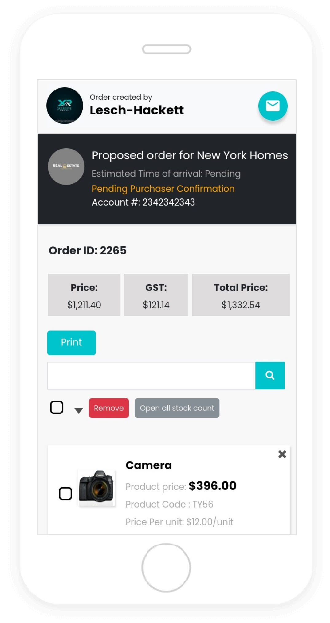 Purchez sends re-orders complete with image s of each item, their descriptions and quantities. It keeps a record of order history and can predict future orders. Customers can response instantly with the user- friendly dashboard. Accepting the order or changing product types, quantities or frequencies of delivery is competed at the touch of a button.